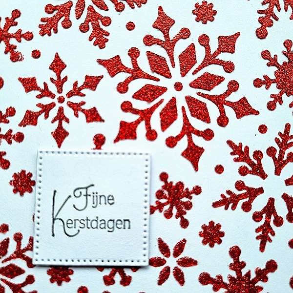 Op de achtergrond zijn diverse sneeuwvlokken te zien die zijn aangebracht met speciale pasta met prachtig glitter effect.De sneeuwvlokken zijn door het reliëf niet alleen te zien, maar ook te voelen.