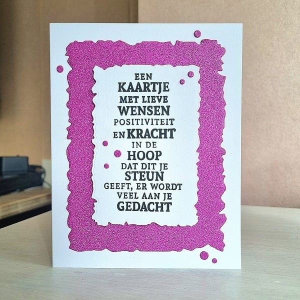 Een kaartje met lieve wensen, positiviteit en kracht, in de hoop dat dit je steun geeft, er wordt aan je gedacht.
