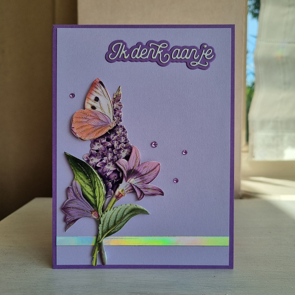 Wenskaart - Ik denk aan je (bloem en vlinder)